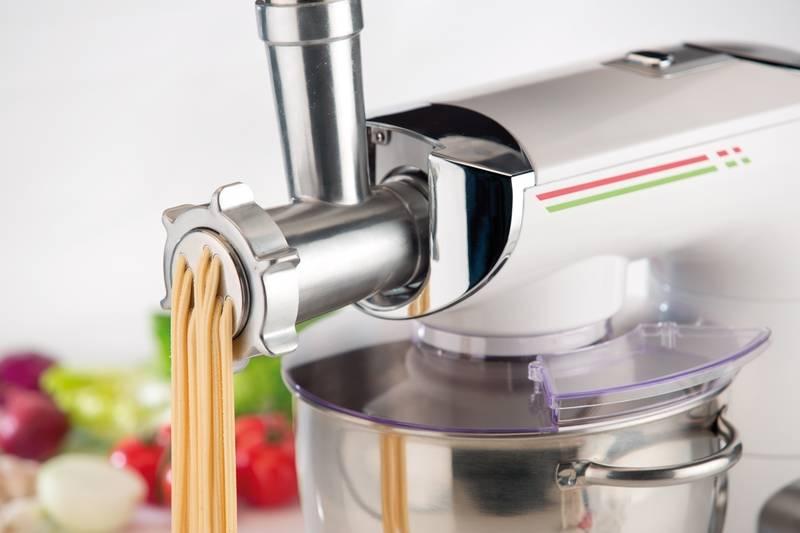 S robotom Gratus Maxipasta No. 3 dokážete vyrobiť vlastné cestoviny z domácich surovín. Vymiesime cesto, vyvaľkáte pláty či pretlačíte zvolený tvar cestoviny a nakoniec si pomocou mlynčeka na mäso či mixéra ešte pripravíte chutnú omáčku.