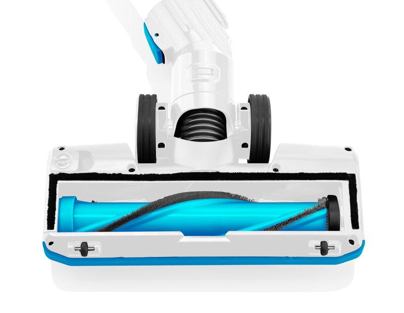 - Rotačný turbokartáč s priamym pohonom a flexibilným kĺbom - je určený špeciálne na vysávanie kobercov s nízkym vlasom, parkiet a tvrdých podláh (linolea, dlažby či plávajúcej podlahy). Jeho kefka je šetrná a pri vysávaní eliminuje riziko poškrabania podlahy.