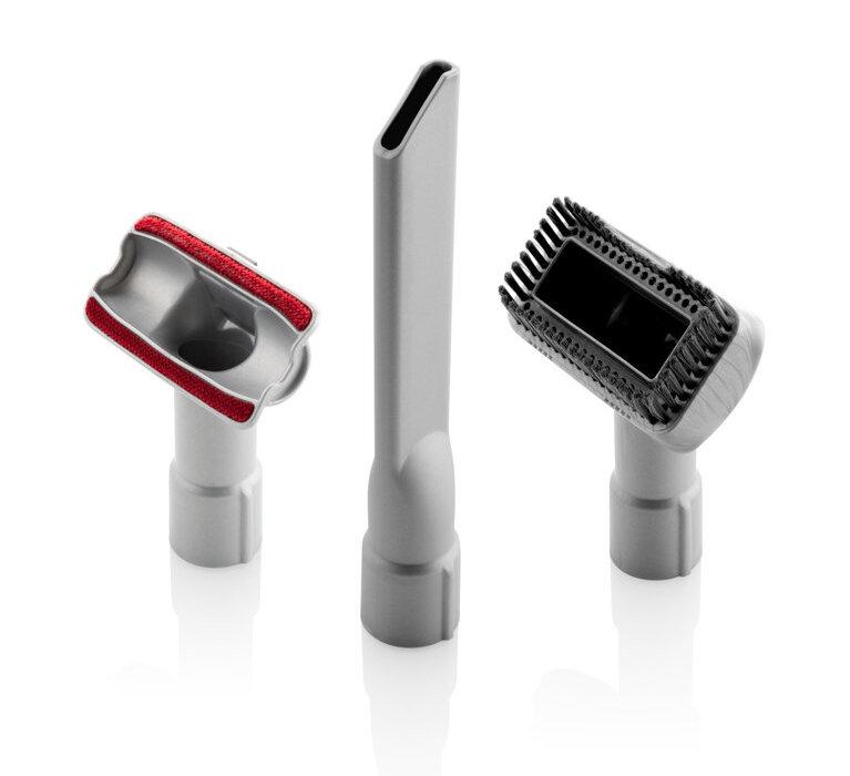 K vysávaču obdržíte aj kompletné vybavenie nutné pre poriadne upratovanie Vašej domácnosti. Okrem flexibilnej predlžovacej hadice a kovovej sacej trubky získate rotačný turbokartáč s priamym pohonom a flexibilným kĺbom určeným špeciálne na vysávanie kobercov s nízkym vlasom, parkiet a tvrdých podláh. Súčasťou balenia je tiež štrbinová hubica vhodná na vysávanie v úzkych a ťažko prístupných miestach, vankúšová hubica šetrne povysáva mäkké textilné povrchy napríklad čalúnenie a vankúše a kefu, ktoré pomáha pri upratovaní na miestach, ktoré potrebujete šetrne zbaviť prachu alebo pavučín.