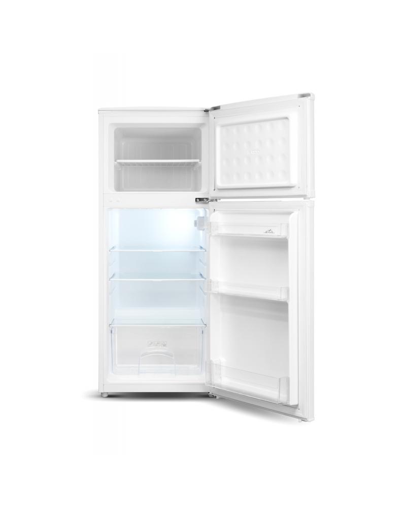 Dvojdverová chladnička ETA vďaka svojej jednoduchosti zapadne do každej kuchyne. Chladiaci priestor s objemom 112 l rozdelujú 2 výškovo nastaviteľné police z bezpečnostného skla. Navyše tu nájdete aj box na uchovávanie čerstvej zeleniny a 3 praktické bočné priehradky na skladovanie vody či studených omáčiek.