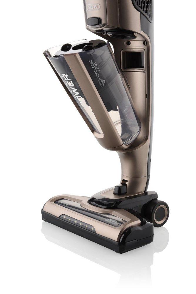 Pri práci nie ste limitovaný žiadnou dĺžkou napájacieho káblu, pretože tyčový vysávač je poháňaný výkonným Li-Ion akumulátorom 40 V, ktorý možno ľahko vytiahnuť a vymeniť. Jedná sa o akumulátor, ktorý sa nabíja po dobu 5 hodín a zaistí vám extra dlhú prevádzku, a to až 90 minút vysávania. Prevádzka a nabíjanie tyčového vysávače vám zobrazuje svetelná signalizácia. Dobíjacia základňa slúži nielen k jednoduchému nabíjaniu, ale aj k praktickému uskladneniu tyčového vysávača. Pre lepšiu viditeľnosť vysávacích plôch slúži dostupné svetelné LED diódy.