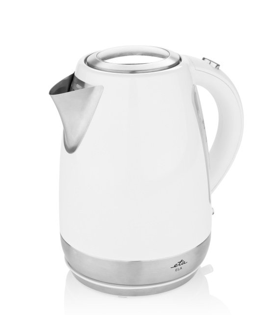 - Rýchlovarná kanvica ETA Ela 8598 90030 v bielom nerezovom prevedení zaujme ľahko čistiteľným povrchom.
