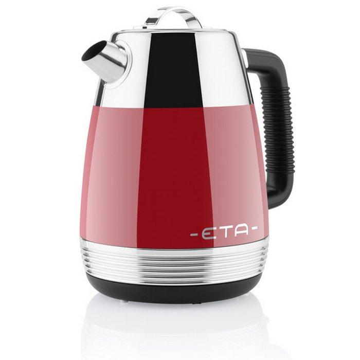 Červená nerezová kanvica ETA Storio o objeme 1,7 l s vyberateľným filtračným sitkom, svetelnou signalizáciou a unikátnym, ale moderným retro.