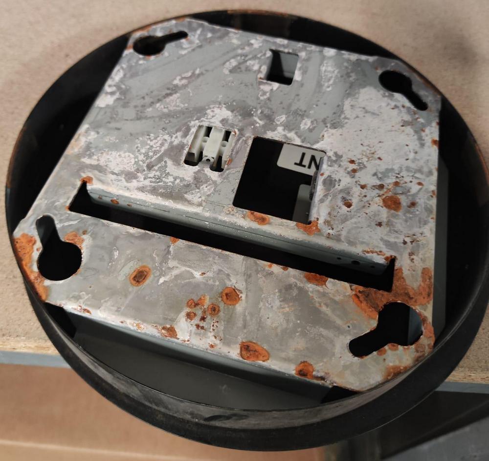 Poškodenie: na vrchnej časti držiaka je povrchová korózia /Viď. foto/