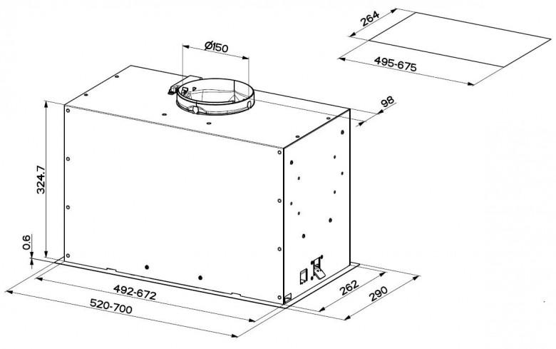 Digestor, Výkon podľa IEC 61591: 260 | 410 | 580 | INT 670 m3/h, Maximálny výstupný tlak: 590 Pa, Hlučnosť podľa iec 60704-2-13: 54 | 59 | 66 | INT 69 dB(A)
