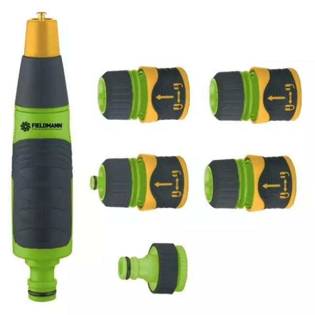 Sada koncoviek, Kompatibilné s hadicou 1/2", 3x koncovka - samica, 1x koncovka STOP - samica, Adaptér 1/2" a 3/4", Zavlažovacia pištoľ