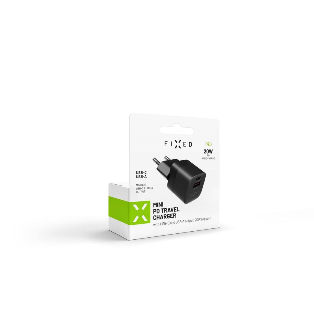 FIXED FIXC20M-CU-BK SIETOVA NABIJACKA MINI S USB-C A USB VYSTUPOM, PODPORA PD A QC 3.0,CIERNY