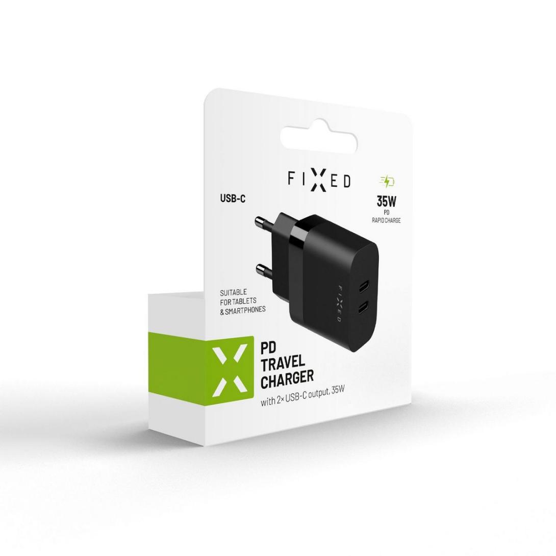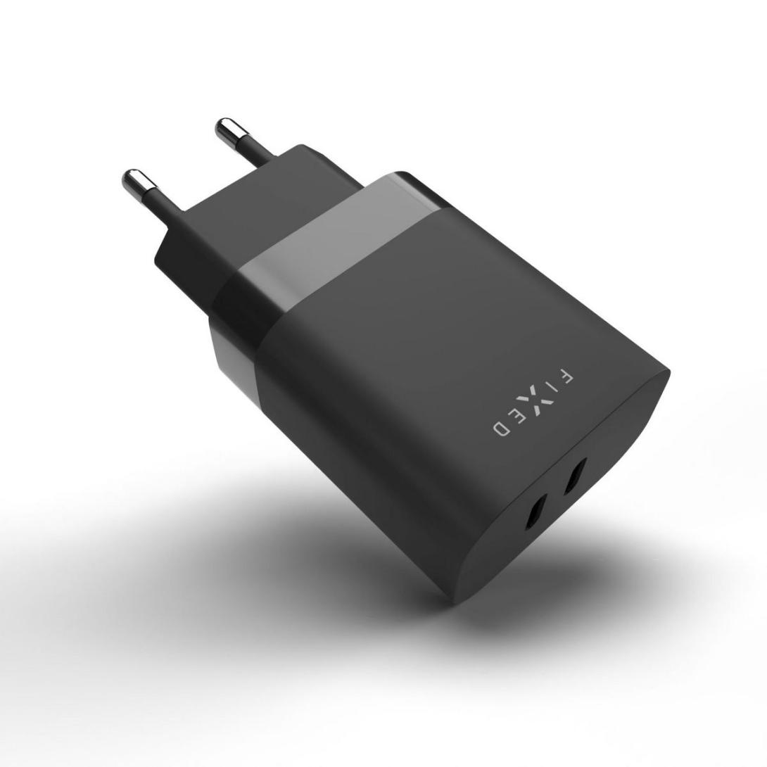 FIXED FIXC35-2C-BK SIETOVA NABIJACKA S 2X USB-C VYSTUPOM, PODPORA PD, 35W, CIERNA