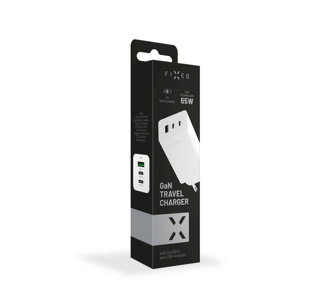 FIXED FIXCG65-2CU-WH SIETOVA GAN NABIJACKA S 2XUSB-C A USB VYSTUPOM, PODPORA PD, 65W, BIELA