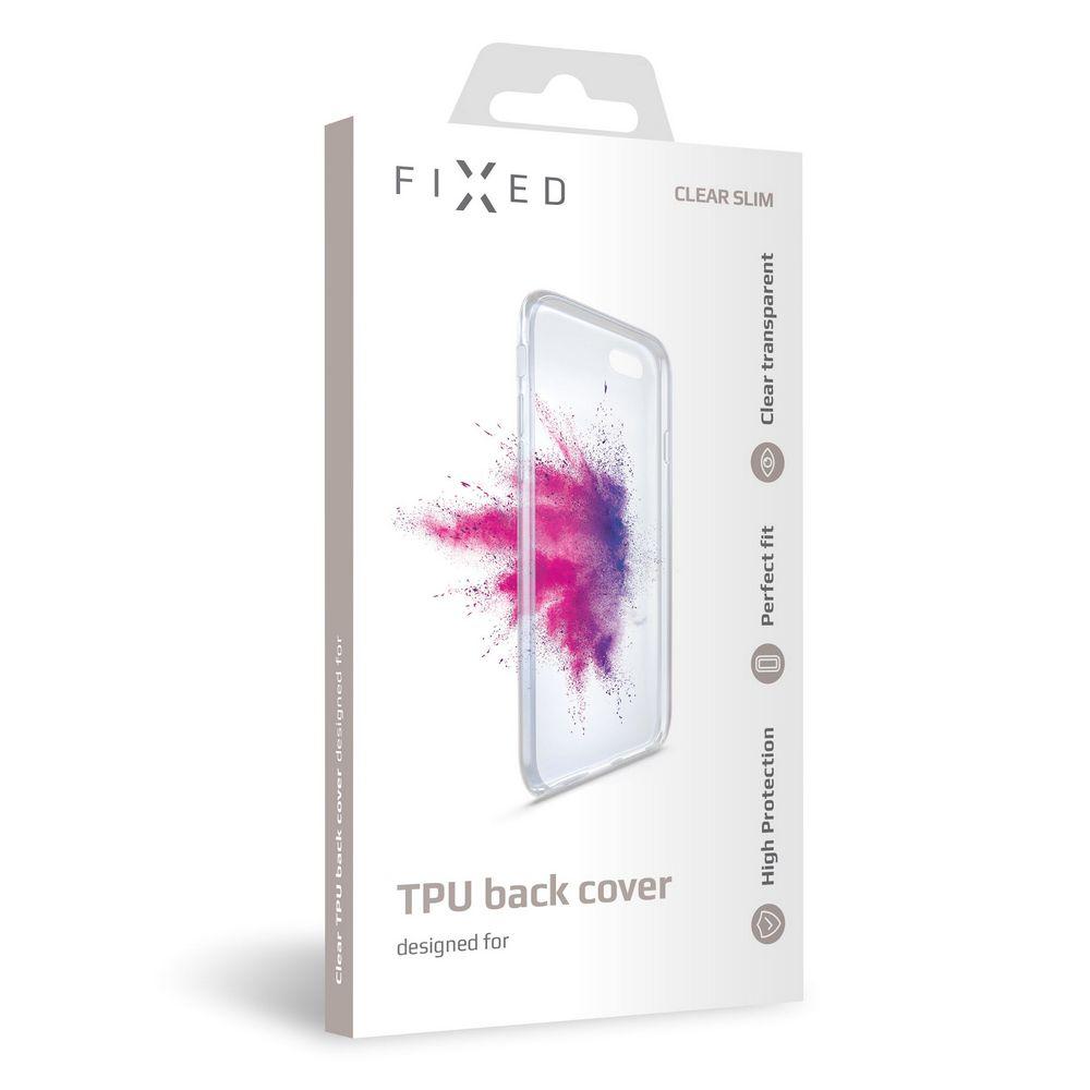 Gelové puzdro FIXED predstavuje jednoduchú, ale napriek tomu efektívnu ochranu vášho inteligentného telefónu. Je vyrobené z TPU materiálu, ktorý chráni boky a chrbát prístroja pred poškrabaním, prachom a prípadnými pády. Plne transparentné vyhotovenie nechá vyniknúť originálnemu dizajnu vášho mobilného telefónu. Puzdro je vyrobené presne na mieru daného zariadenia, nezakrýva nabíjací ani slúchadlové konektory. Okraje puzdra ľahko presahujú displej a chráni ho tak pred poškriabaním, pre maximálnu ochranu telefónu je však vhodné doplniť puzdro sklom na displej.