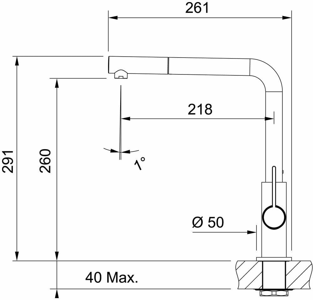 Kuchynská batéria, Výška batérie: 291 mm, Dĺžka sprchovej hadic: 150 cm