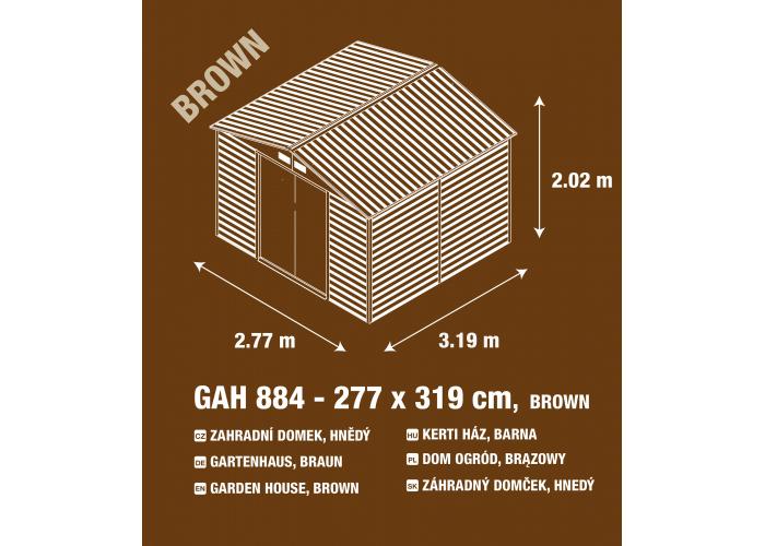 Záhradný domček, Rozmery vonkajšie Š x V x H: 277 x 198 x 319 cm, Rozmery vnútorné Š x V x H: 267 x 193 x 309 cm
