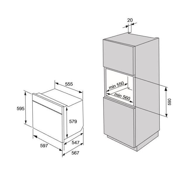 - Rozmery pre zabudovanie (šxvxh) min-max: 56-56,8 × 58,3-60 × 55 cm