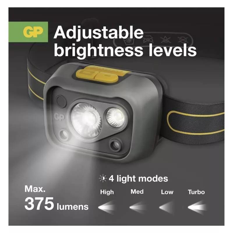 Potrebujete rýchlo zmeniť intenzitu vyžarovaného svetla? Jediným mávnutím ruky pred zabudovaným senzorom v čelovke GP Discovery CHW54 zmeníte intenzitu svetla zo 100 % na 15 % a naopak.