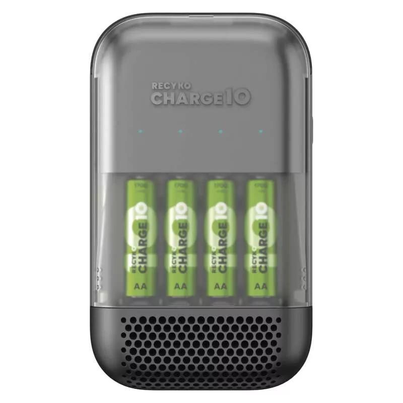 Nechcete zaťažovať životné prostredie opakovaným kupovaním jednorazových batérií, ale zdĺhavý proces nabíjania vás otravuje? S GP Recyko Charge 10, najrýchlejšou nabíjačkou na svete, budú vaše batérie spoľahlivo nabité za 10 minút. Nabíjačka vás poteší aj ochranou proti prehriatiu, režimom ECO na šetrné nabíjanie batérií NiMH, plne automatickým inteligentným nabíjaním a maximálne tichou prevádzkou. Nabíjačka, ktorá si poradí so všetkými typmi batérií AA a AAA, obsahuje aj 4 ekologické batérie AA s kapacitou 1 700 mAh na rýchle nabíjanie, ktoré vydržia viac ako 700 nabíjacích cyklov.
