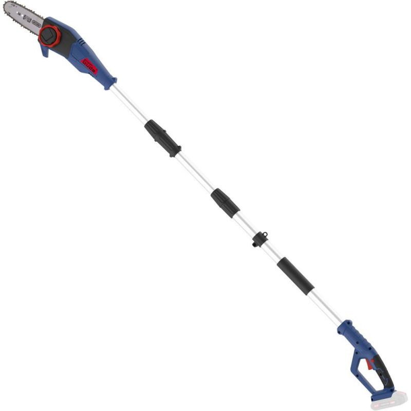 Akumulátorový odvetvovač so systémom batérie 18V E3. Rýchloupínací systém reťaze, integrovaná nádržka na olej, automatické mazanie reťaze, reťaz a lišta Oregon, teleskopická násada, Softgrip rukoväť, doraz, zachytávací čap reťaze, puzdro na reťaz pre skladovanie, popruh. Bez batérie a nabíjačky.