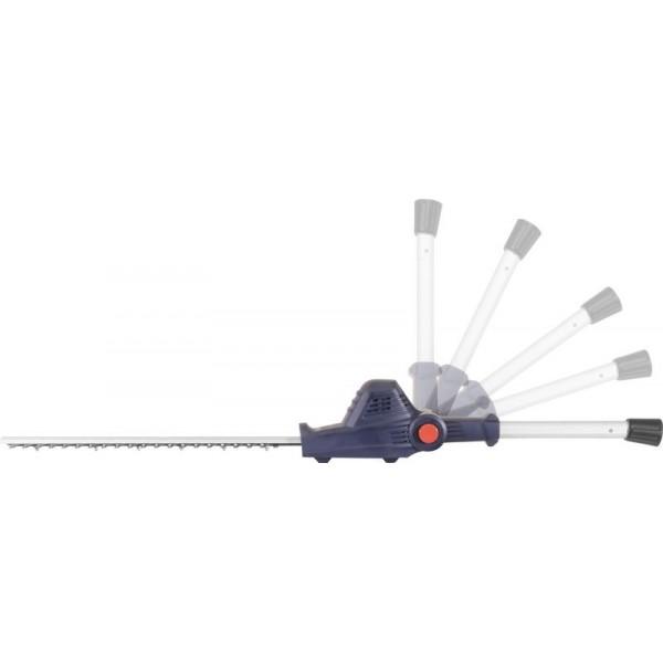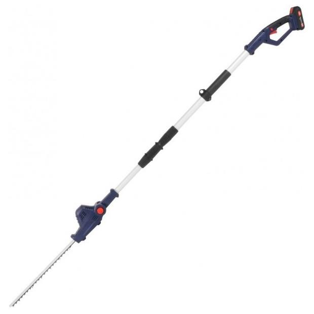 Akumulátorové nožnice na živý plot so systém batérie 18V E³. 90° sklopná hlava motora (6 polôh) protibežné laserom rezané a diamantom brúsené nože, rýchle zastavenie nožov, kovová prevodovka, teleskopická násada, Softgrip rukoväť, prídavná rukoväť, puzdro na reťaz, popruh. Vrátane batérie 2,0 Ah a nabíjačky 0,5 A.