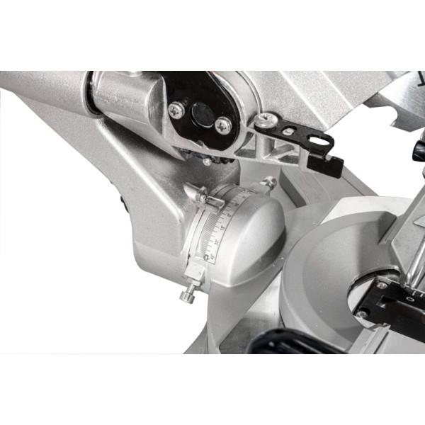 Radiálna kapovacia píla s plynule, obojstranne otočnou pílovou hlavou. Radiálne vedenie uložené v guľôčkových ložiskách, laser, svorka na uchytenie obrobku, široký pracovný stôl, vysoký hliníkový doraz, vrecko na zachytávanie triesok na zníženie tvorby prachu pri rezaní, prípojka na odsávacie zariadenie.