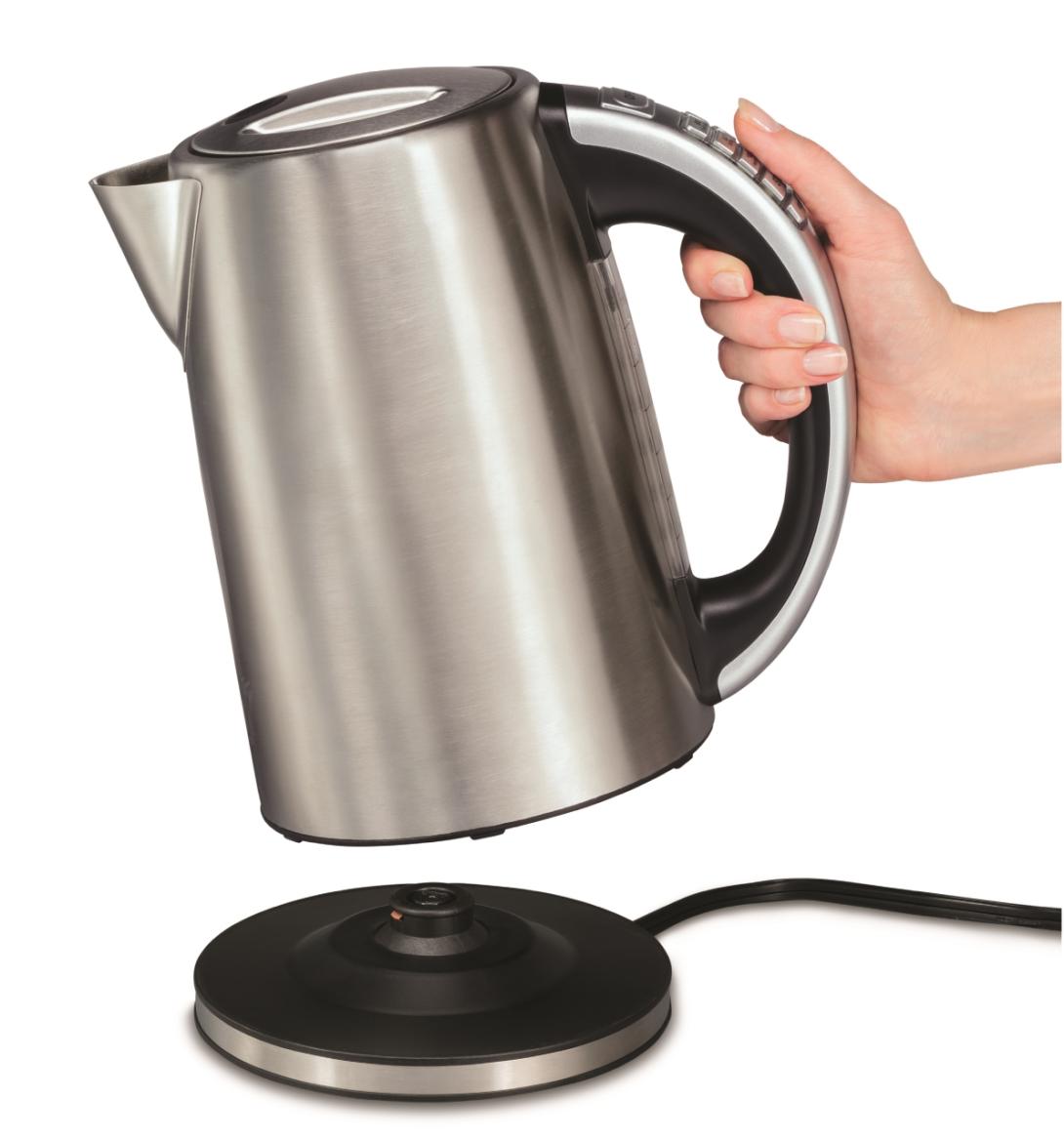 Rýchlovarná kanvica, Funkcia udržiavania nastavenej teploty v priebehu 30 minút, Odnímateľná základňa s 360° konektorom, Priehľadný vodoznak, Automatické otváranie veka