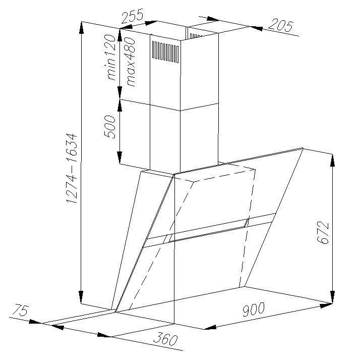 Moderný sklenený komínový odsávač pár.