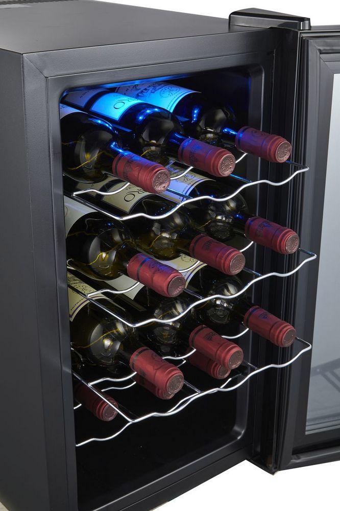 Vinotéka, kapacita 15 fliaš, 48l netto, 4 chrómové drôtené police, LED display + termostat s digitálnym ukazovateľom teploty, spotreba 0,25kWh/24