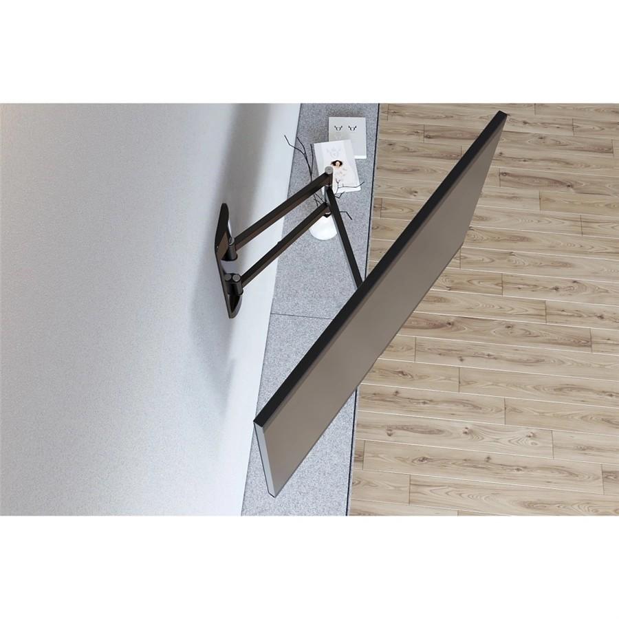 Nástenný držiak tv, dlhé rameno umožňuje otočiť aj väčší TV o 90° (kolmo k stene), svorka pre uchytenie káblov