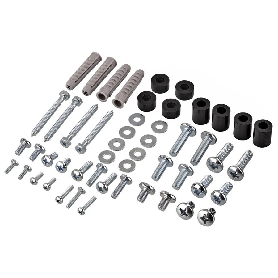 - zmontovaný držiak, set skrutiek a značkových hmoždiniek Fischer, vodováha, vŕtacia šablóna, ceruzka, plastový kryt nástenného modulu