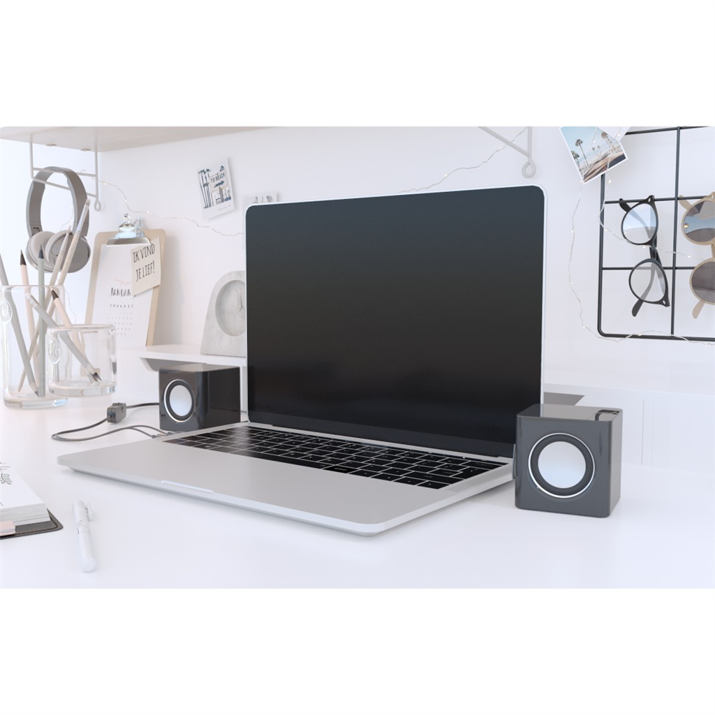Aktívny 2.0 reproduktor k notebooku alebo PC, možnosť nastavenia hlasitosti, napájanie pomocou USB pripojenia