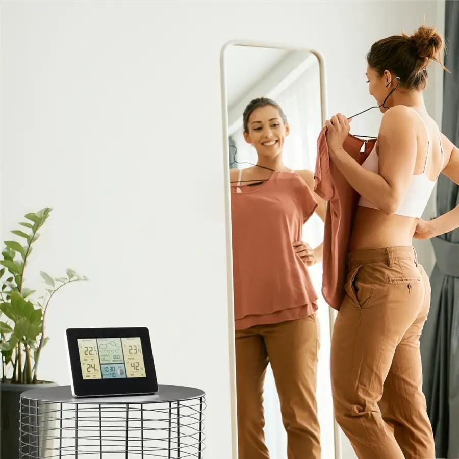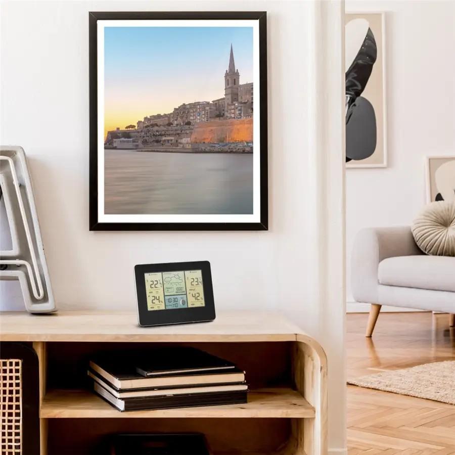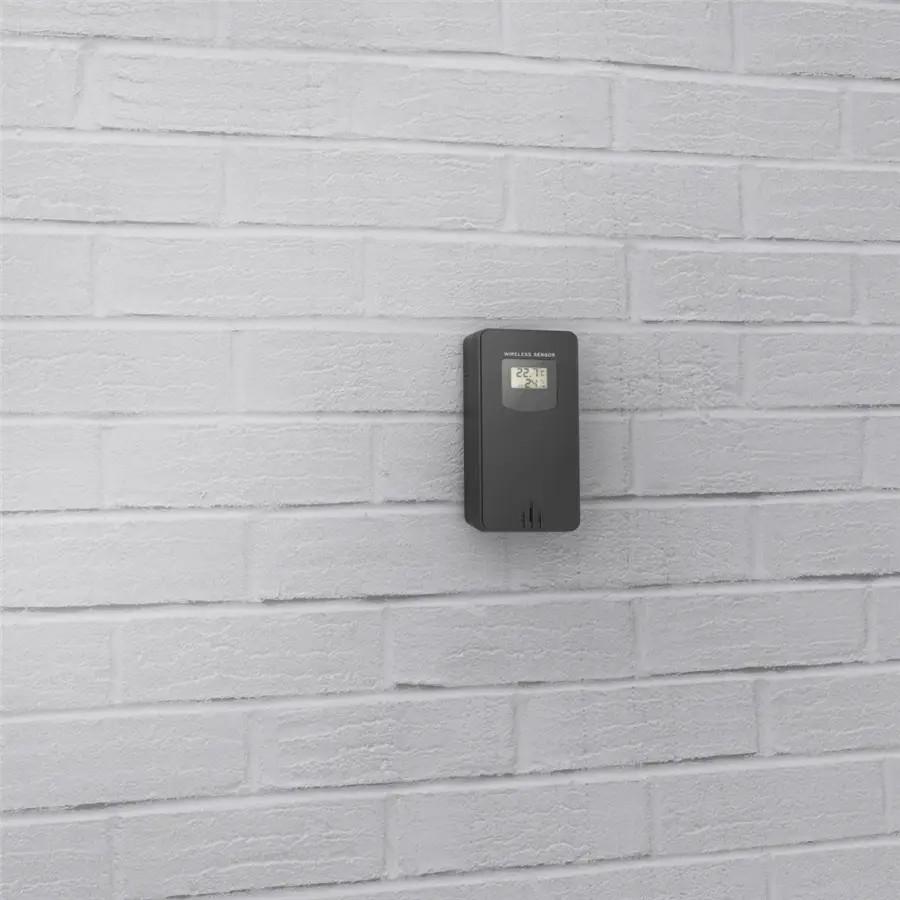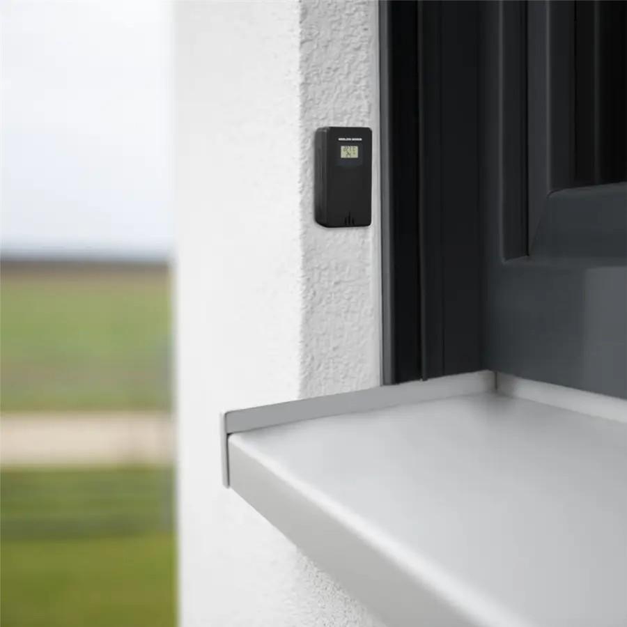 bezdrôtový senzor s displejom zobrazujúcim teplotu a vlhkosť vzduchu