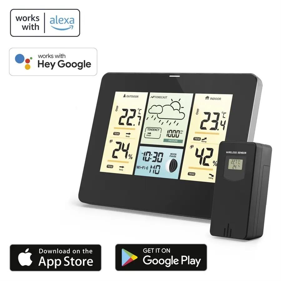 prístup k údajom o počasí priamo na meteostanici, alebo v aplikácii alebo pomocou hlasového asistenta (Amazon Alexa, Google Assistant)