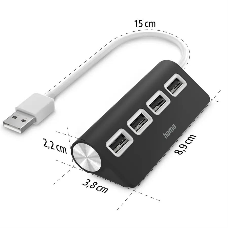 HAMA 200119 USB HUB, 4 PORTY, USB 2.0, CIERNY