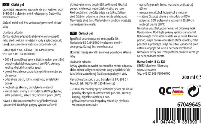 HAMA 49645 CISTIACI GEL NA OBRAZOVKY, 200 ML, VRATANE UTIERKY