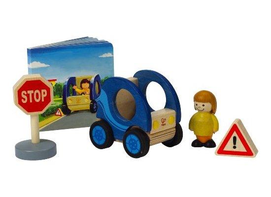Drevené autíčko, Môj malý svet. Drevená súprava s autom, dvoma dopravnými značkami a bábikou.