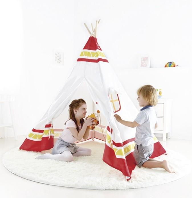 Zahrajte sa s týmto čarovným stanom na dobrodružný život severoamerických indiánov. Perfektné kulisy k Vašej hre v odtieňoch žltej a červenej.