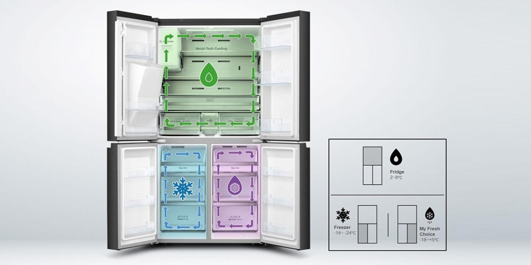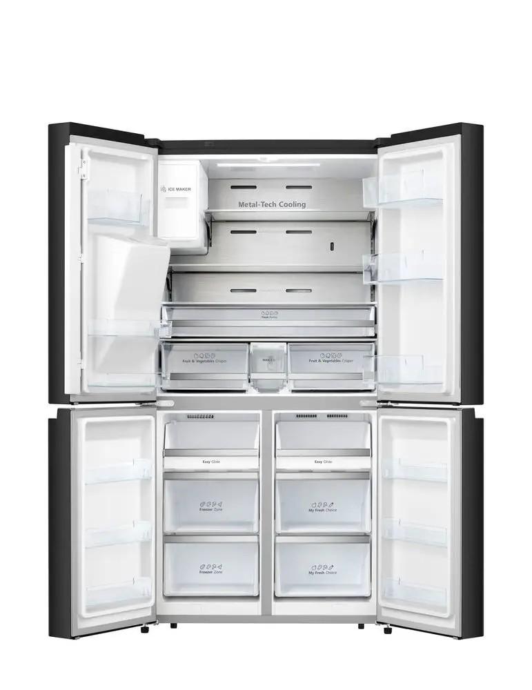 Sme si istý, že do akéhokoľvek interiéru skvele zapadne moderná štvordverová americká chladnička Hisense RQ760N4AFF, v čiernej farbe. Chladnička ponúka objem 352 litrov a mraznička vás poteší objemom až neuveriteľných 233 litrov. Za najväčšiu prednosť považujeme beznámrazovú technológiu Total No Frost, ktorá sa za vás postará o neobľúbené odmrazovanie. Súčasťou chladničky je tiež Multi Air Flow - inteligentný systém prúdenia vzduchu, ktorý udrží vaše potraviny dlhšie čerstvé. Rýchleho a efektívneho zachladenia alebo zmrazenia potravín dosiahnete pomocou funkcie Super Cool a Super Freeze. V prípade, že necháte dvere chladničky otvorené, upozorní vás praktický alarm. Bez obáv o vaše potraviny a o spotrebu vašej chladničky, zvoľte pred odchodom na dovolenku funkciu Holiday. Chladnička má veľmi bohaté vybavenie vnútorného priestoru v podobe zásuvky My Fresh Choice s možnosťou upraviť si teplotu na 3 rôzne teplotné režimy. Vnútorný priestor chladničky HISENSE RQ760N4AFF je vybavený kvalitným LED osvetlením pre lepší prehľad o vašich potravinách. Mraziaca časť chladničky Hisense je rozdelená na 6 zásuviek, tak aby ste aj mrazené potraviny mali pod kontrolou! V letných mesiacoch sa navyše môžete schladiť pomocou dávkovača vody a výrobníku ľadu.