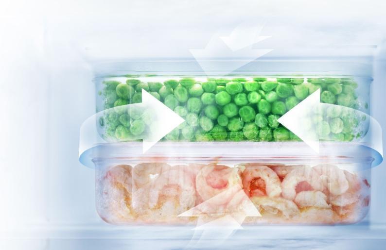 Užitočná funkcia Super Freeze rýchlo zmrazí jedlo na teplotu -18 °C, a to vďaka dvom ventilačným otvorom za horným mraziacim boxom. Potraviny si tak zachovajú lepšiu kvalitu a viac telu prospešných látok.