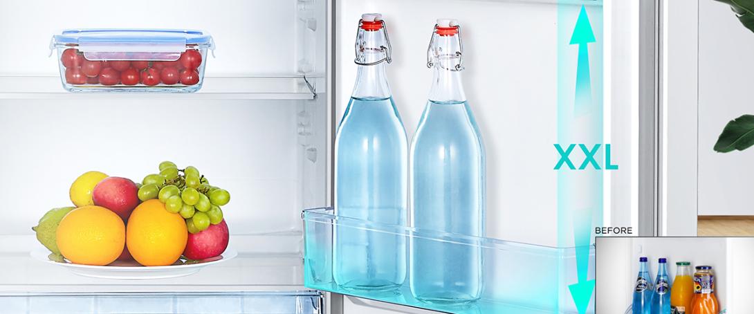 - Voľne stojaca kombinovaná chladnička v bielom dizajne