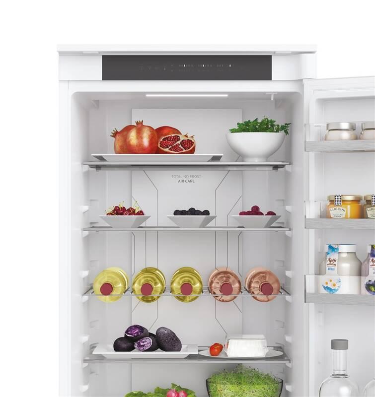 Total No Frost Air Care zaručuje homogénnu teplotu a vlhkosť na každej polici vďaka jemnému prúdeniu vzduchu vychádzajúcemu z bočných vývodov stĺpika vo vnútri chladničky a nikdy priamo nenaráža na potraviny, čo umožňuje udržovať potraviny čerstvé a zdravé už prvý deň.