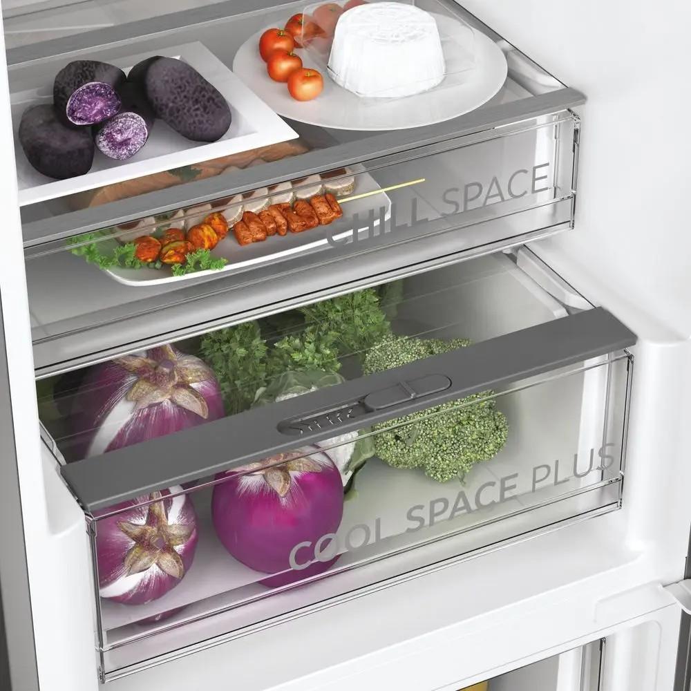 Zásuvka Cool Space Plus je vďaka regulácii vlhkosti ideálnym miestom na uskladnenie ovocia a zeleniny, ktoré ich uchová vždy čerstvé. Posuňte slider a nastavte správnu úroveň vlhkosti v zásuvke pre vyššiu alebo nižšiu úroveň vlhkosti.