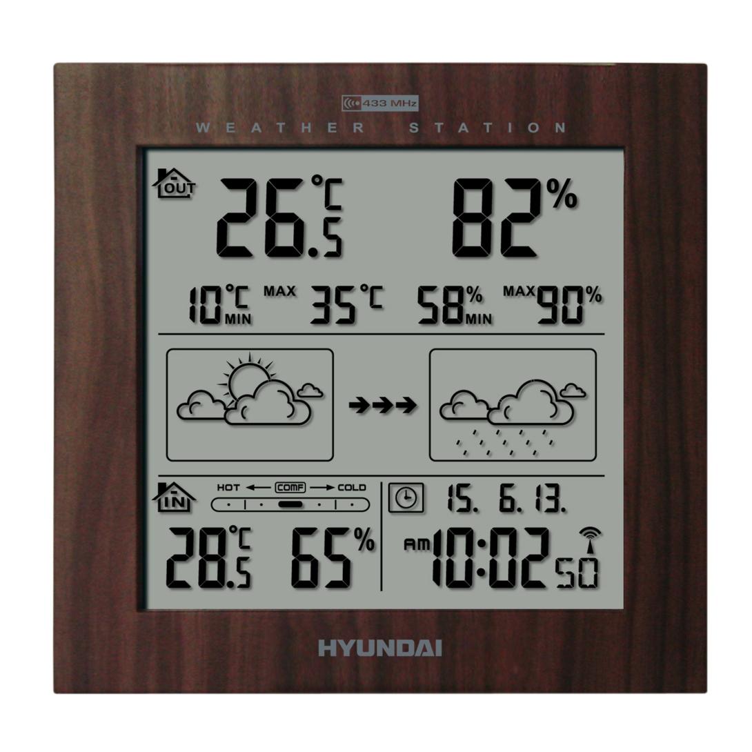 Menšia vkusná meteostanica Hyundai WS 2244W zobrazuje presný čas, vnútornú aj vonkajšiu teplotu a vlhkosť vzduchu. Predpoveď počasia vás graficky znázorní, aké počasie máte v blízkej budúcnosti očakávať. Funkcia Comfort index graficky znázorňuje optimálnu vnútornú teplotu. Dosah bezdrôtového senzora je v otvorenom priestore 30 m a je napájaný 2× AAA batériami.