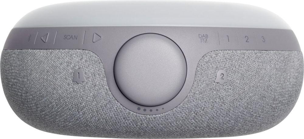 Zobuďte sa na zvuk JBL Pro Sound. So svojim charakteristickým okrúhlym dizajnom, okolitým LED svetlom a DAB/DAB+/FM rádiom, dopĺňa JBL Horizon 2 každú spálňu. Veľký LCD displej jasne zobrazuje čas, nastavenie budíka a informácie o rádiu, zatiaľ čo lifestylový textilný poťah dokonale ladí s akýmkoľvek dekorom. Vyberte si z ponuky tónov budenia alebo jednej z vašich obľúbených DAB, DAB+ alebo FM rozhlasových staníc. Ľahko použiteľný otočný ovládač umožňuje nastaviť a odložiť budíky, nastaviť hlasitosť alebo zapnúť a vypnúť okolité svetlo. Spolu s dvoma praktickými USB portmi na nabíjanie vašich zariadení, je JBL Horizon 2 dokonalým spoločníkom pri lôžku.