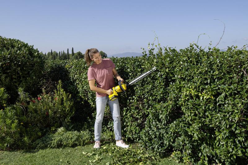 Akumulátorové nožnice na živý plot HGE 18-50 Battery zabezpečujú extrémne pohodlné strihanie živého plota.Sú vybavené rukoväťou otočnou o 180°, ktorá zabraňuje únave ramien alebo rúk a pliec v rôznych pracovných polohách, ako napríklad pri vertikálnom strihaní. Prídavná lišta na odstrihnuté kusy je maximálne užitočným pomocníkom. Zabezpečuje, že ostrihané konce nepadajú jednoducho do živého plota, ale úplne pohodlne sa dostanú na zem. Nôž akumulátorových nožníc na živý plot je brúsený diamantom, čím sa dosiahne presný výsledok rezania. Nôž je ďalej vybavený integrovanou ochranou hrotu vrátane závesného oka. Takto sú budovy, podlahy a samozrejme aj nôž samotný chránené pred poškodením – a prístroj je možné zavesiť na stenu, čím šetrí miesto. Ďalšou výhodou akumulátorových nožníc je funkcia pílenia. Táto funkcia umožní pílenie hrubších konárov. Taktiež praktický je antiblokovací systém pre prácu bez prerušenia.