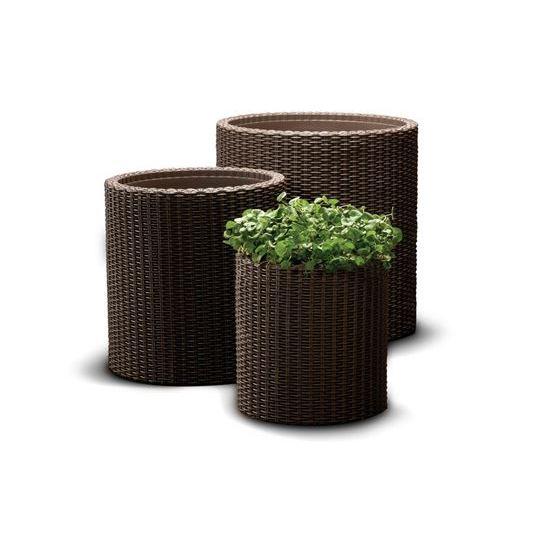 Kvetináč Cylinder M Brown značky Keter pripomína svojím dizajnom prírodnú ratanovú väzbu. Skvele tak doplní ako moderný, tak i tradičný look okolia. Kvety v ňom prirodzene vyniknú.