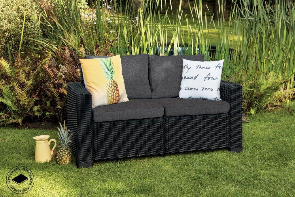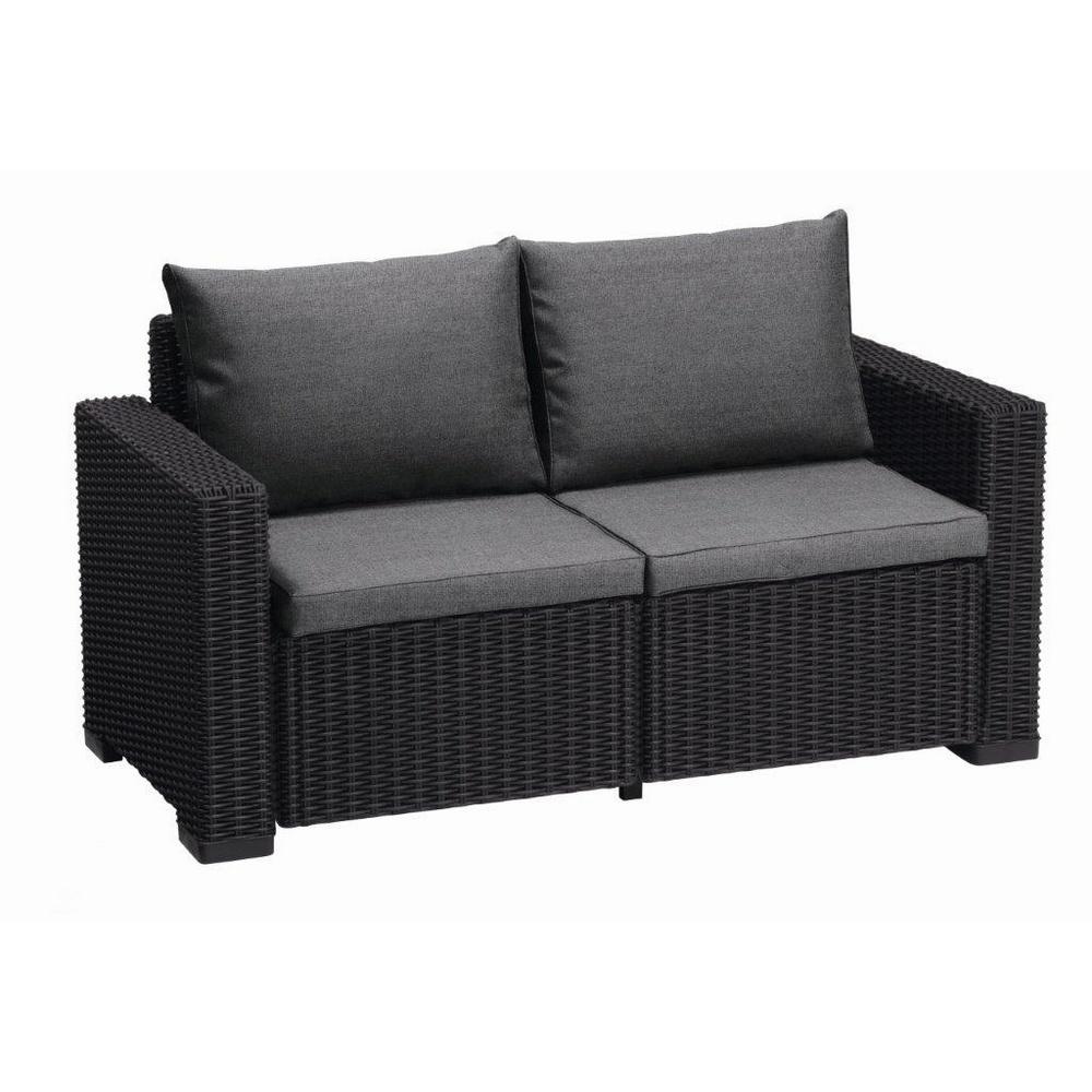 Záhradná dvojmiestna pohovka California značky Keter v grafitovej farbe vás nadchne svojím nevšedným dizajnom v imitácii prírodného ratanu. Konštrukcia je pritom pevná a vydrží bežné zaťaženie vonkajšej prevádzky.