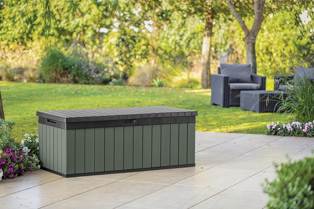 Nájdite pre box ideálne miesto na záhrade. Vďaka štruktúre, ktorá pripomína drevo, zapadne do každého prostredia. Uložené veci navyše môžete uzamknúť vo vnútri boxu. Hydraulický piestový systém zaistí plynulé a bezpečné zatváranie a otváranie veka. Po zatvorení sa na neho navyše usadia až 2 ľudia.