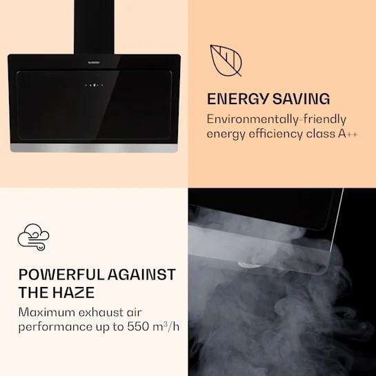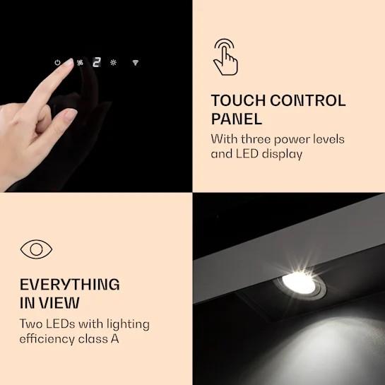 Digestor, Výkon odsávania: max. 550 m³/h, Zapínateľné biele LED osvetlenie varnej dosky, Prevádzkový hluk: 48 až max. 60 dB.