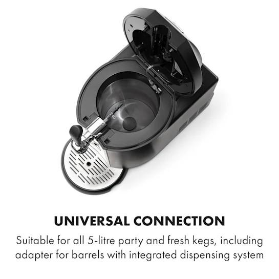 - univerzálna prípojka: vhodná na všetky 5 litrové párty sudy alebo sudy so vstavaným výčapným systémom, vrátane adaptéru