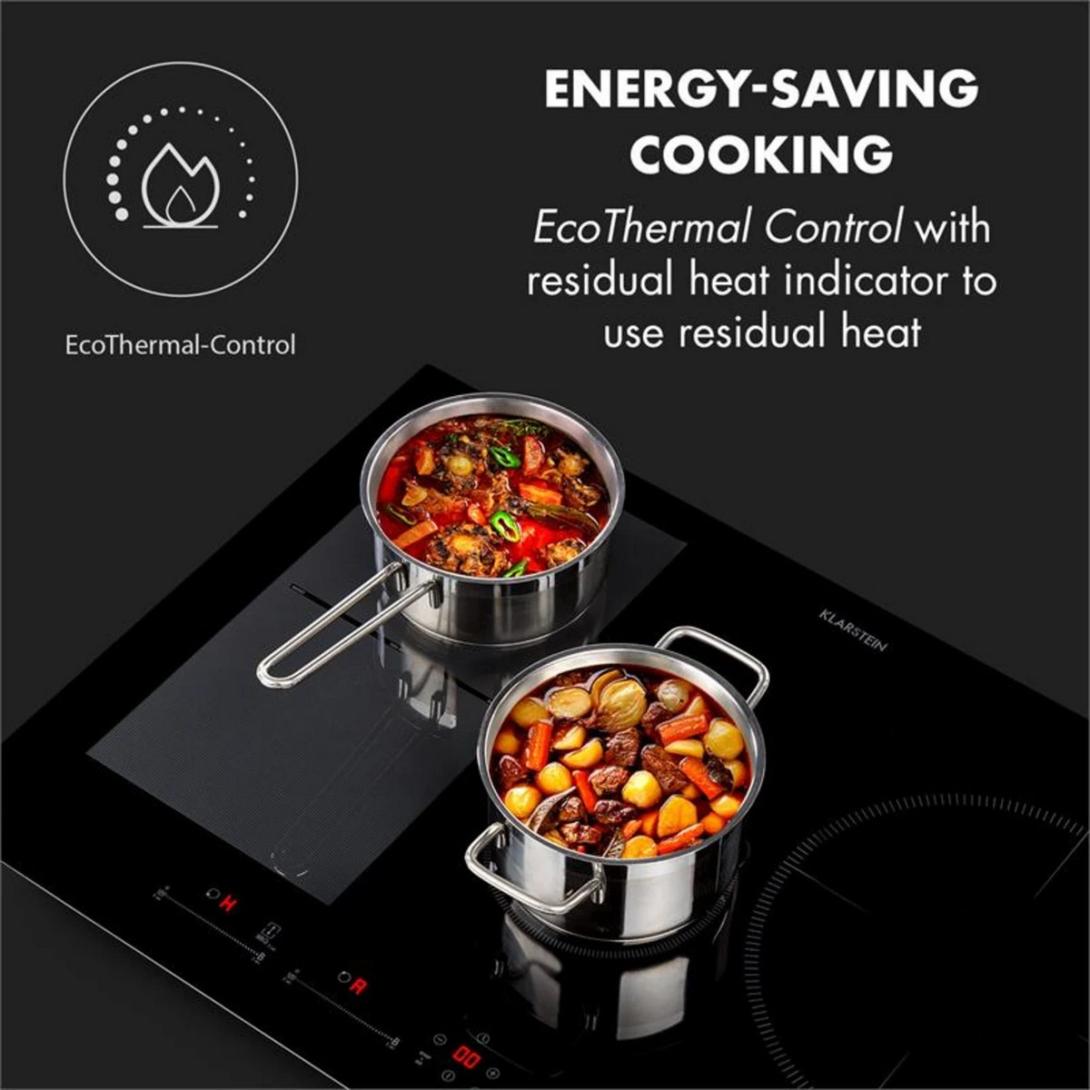 - Energeticky úsporné varenie: ovládanie EcoThermal so zobrazením zvyškového tepla na využitie zvyškového tepla
