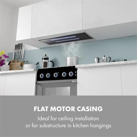 - Plochá konštrukcia motora: ideálna na montáž na strop alebo na zabudovanie do spodnej časti kuchynskej linky