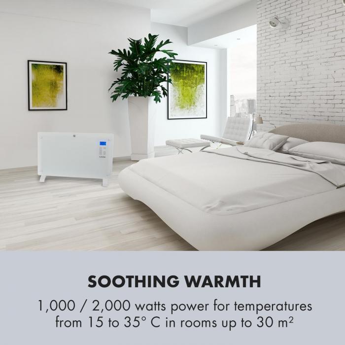 Konvektor, Príjemné teplo: výkon 1000/2000 W pre teploty od 15 do 35 °C v miestnostiach do 30 m², teplotný rozsah: 15° - 35 °C v krokoch po 1 °C, Režim Eco, Napájanie: 220 - 240 V~ | 50/60 Hz